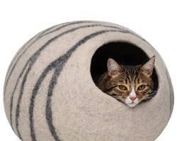 This twin-entry cat cave is handcrafted from 100% all-natural wool. The Twin Critters Cat Cave features a quirky, attractive design that cats adore. Its open-ended structure allows for easy entry and exit, and the materials are ethically sourced.
