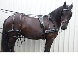 This harness is designed to be used for a variety of activities, such as pulling a wagon, plowing, or logging. It is made from strong materials and features a number of features that make it comfortable for the horse.